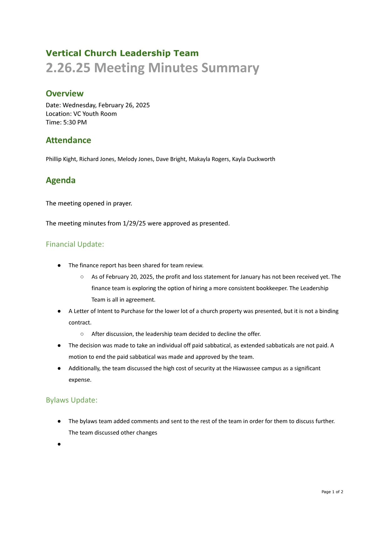 The Leadership Team creates Committees called “Teams” to help share and accomplish specific responsibilities of church leadership and to advise the Leadership Team for decision making. These members consist of Leadership Team Members and appointed members of the church congregation who possess the needed professional skills and wisdom for each responsibility. They are created and appointed by the Leadership Team as needed.